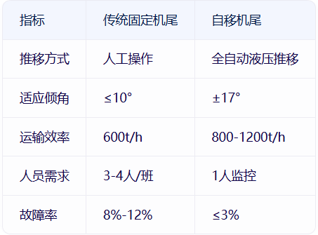 煤礦自移機尾(Self-advancing Tailpiece)是專為綜采工作面設計的智能化運輸設備,通過液壓驅動系統實現自動前移,配合轉載機完成煤炭轉載。該設備集機械、液壓、電控技術于一體,具有推移力大、適應性強、操作便捷等特點,特別適用于長壁開采、大傾角煤層及復雜地質條件,有效解決了傳統設備需人工頻繁調整機尾的痛點。